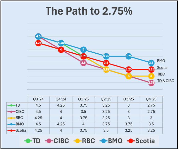 This will impact variable mortgage holders, HELOCs, and personal lines of credit. Fixed rate mortgages are not directly tied to the policy rate. They move with the bond market. However, we’re seeing lenders adjust their rates in response to the overall lower cost of borrowing.