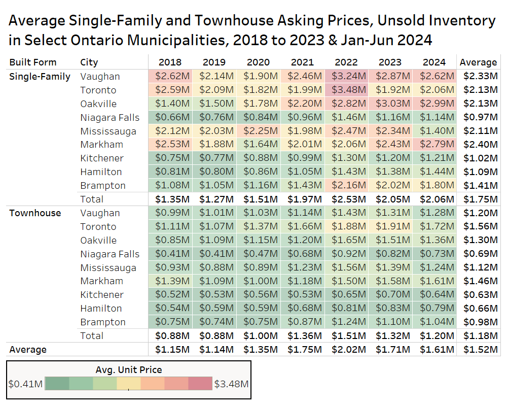The average asking price is down 31% from the July 2022 peak across the GTHA.