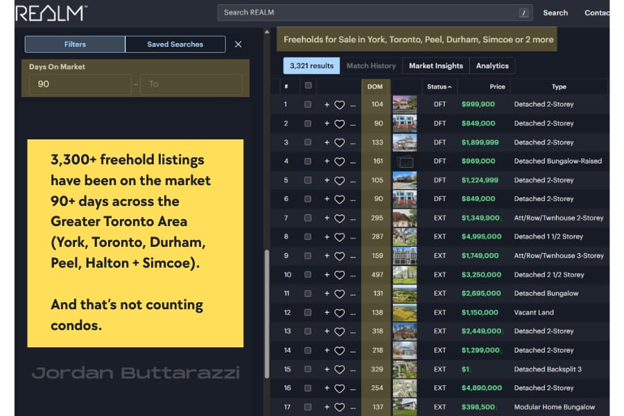 As of this writing, there are more than 3,300 freehold homes across the GTA have been sitting for 90+ days with some stretching over 500 days on market.
