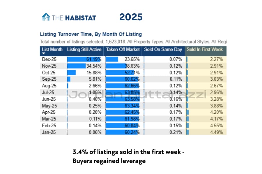Last year, less than 4% of listings sold within the first week. Not because demand vanished, but because the market is no longer operating on urgency. It’s operating on math.
