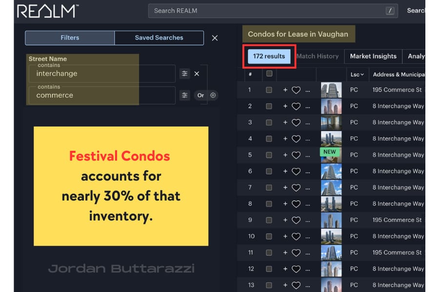 When we take a closer look, Festival Condos now accounts for nearly 30% of all active condo lease listings in the City of Vaughan.